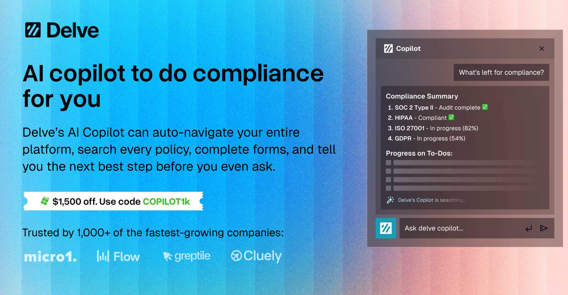 Book a demo here to get $1,500 off compliance and see Copilot in action.