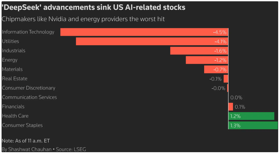 This caused the tech-focused Nasdaq index to drop. Nvidia’s stock value declined, falling nearly 17%, recording the largest single-day loss in market value ever seen for a U.S. company.