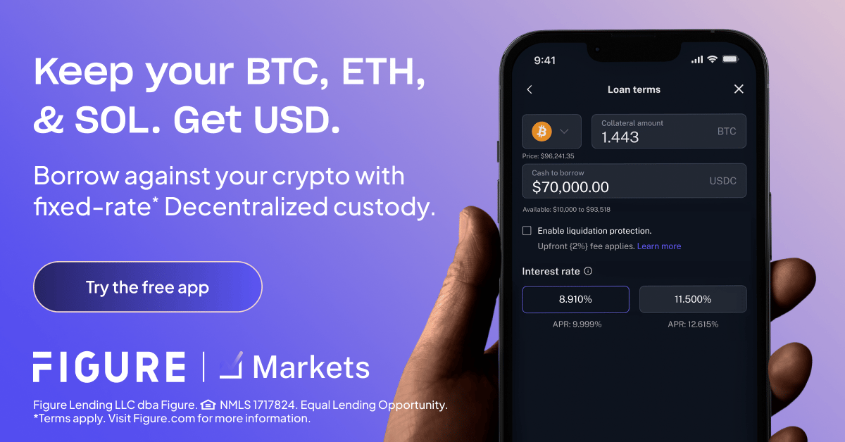 Figure—the largest non-bank HELOC lender in the U.S., with $19B+ unlocked—lets you tap liquidity without selling your BTC, ETH, or SOL. Borrow with industry-low rates, liquidation protection, and secure MPC custody.
